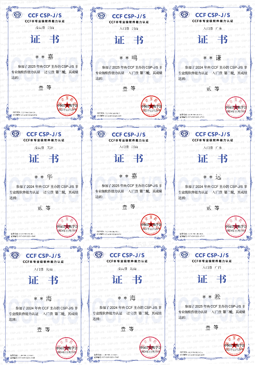 多名学员包揽信奥系列赛事一等奖,教育部白名单赛事国赛大奖,战绩碾压同级。